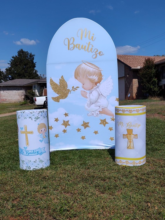 Use it to create a serene, picture-ready atmosphere that keeps attention on the rite and the family: soft color palettes and meaningful symbols set a reverent tone without being somber, while subtle celebratory touches keep the event feeling joyful. Ideal for parents who want a tasteful, coordinated look with minimal fuss—this rental gives you the visual foundation for a memorable bautizo that honors tradition and makes photography, guest interaction, and post-ceremony mingling feel effortless.